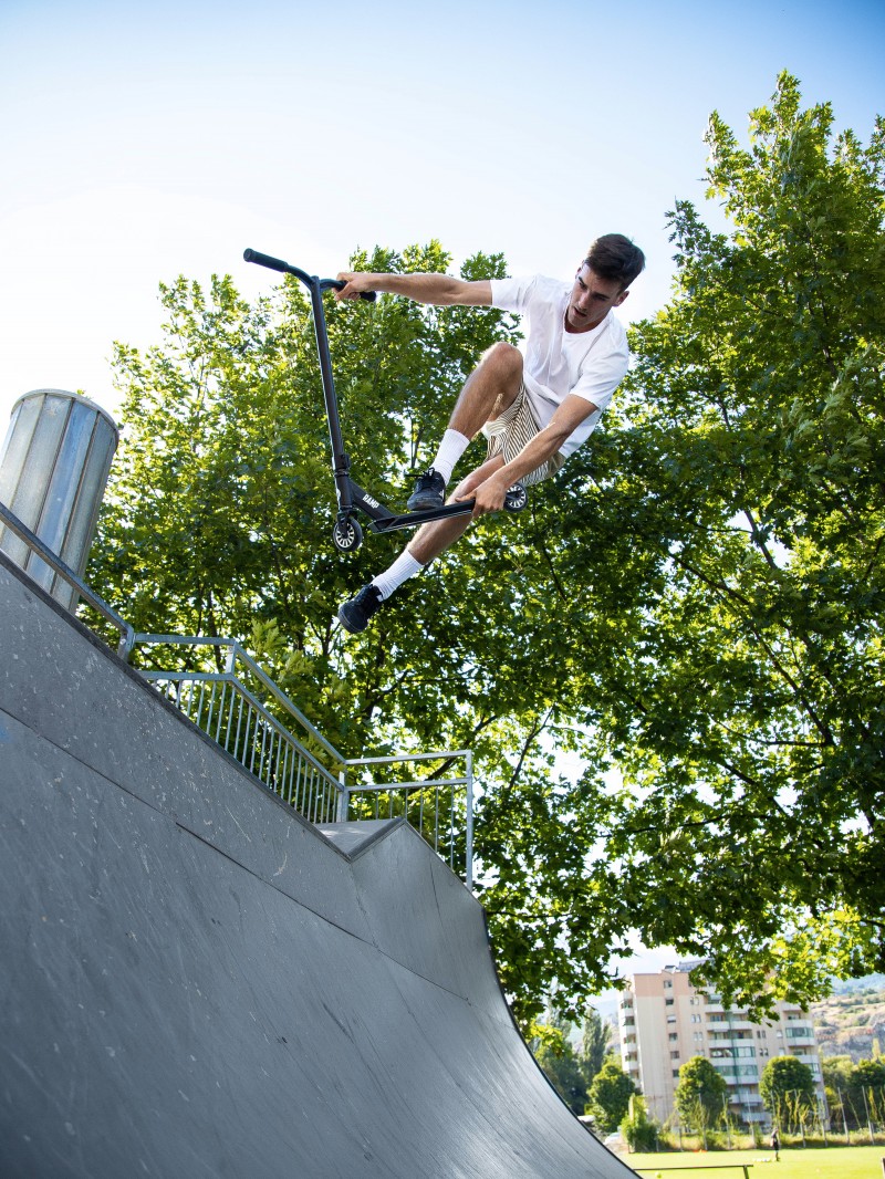 Cette trottinette freestyle dispose d’un guidon plus large qui tourne à 360° et de petites roues afin de la rendre la plus maniable possible. Avec un poids de 3,7kg, cette trottinette est très légère. L’objectif est de permettre à votre enfant de réaliser ses premières figures en toute sécurité. Cette trottinette est très robuste, elle a été conçue pour supporter les chocs liés aux figures réalisées dans les skates parks.