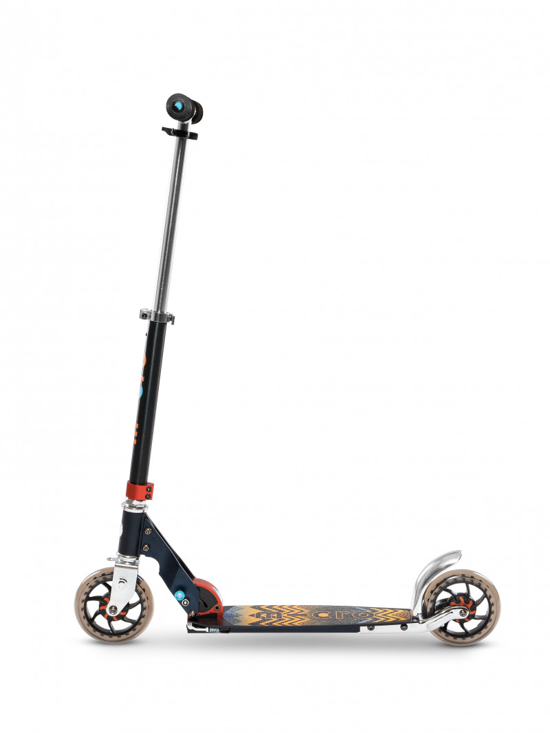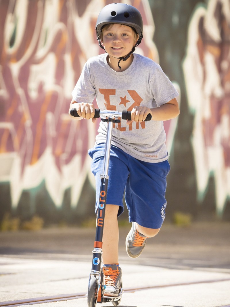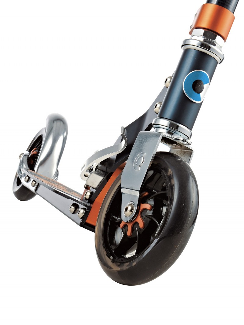 Micro Speed + : cette trottinette est équipée d’absorbeurs de chocs dans les roues, la planche est très base. Cela apporte un confort supplémentaire et demande moins d’efforts.