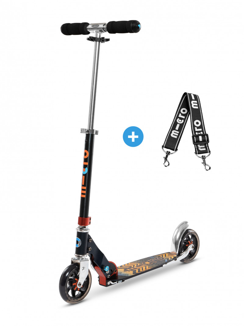 Pliables, compactes et légères la Micro Speed+, Micro Flex 145 mm et la Micro Sprite se transportent facilement. De plus en ajoutant une lanière de transport, vous pourrez porter facilement cette trottinette adulte à l’épaule.