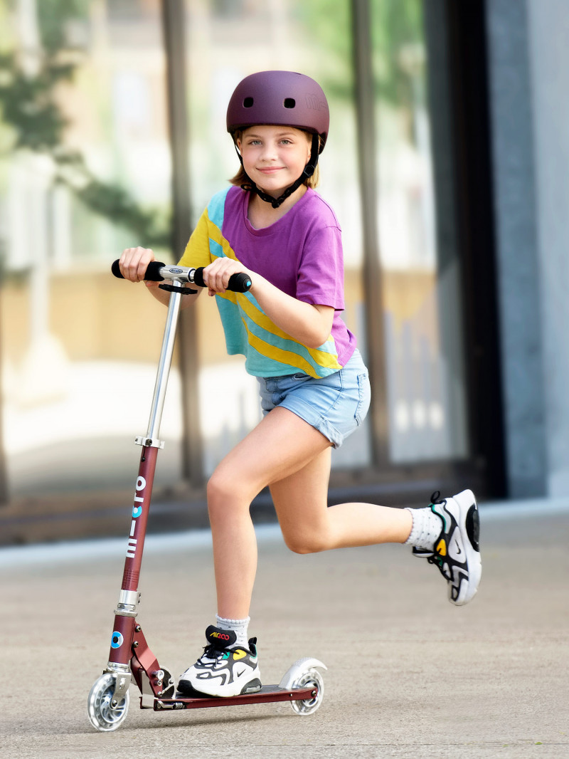 Ces casques unis se marient parfaitement avec les trottinettes Micro Sprite dans les trois couleurs tendance vert sapin, rouge automne et bleu pétrole.