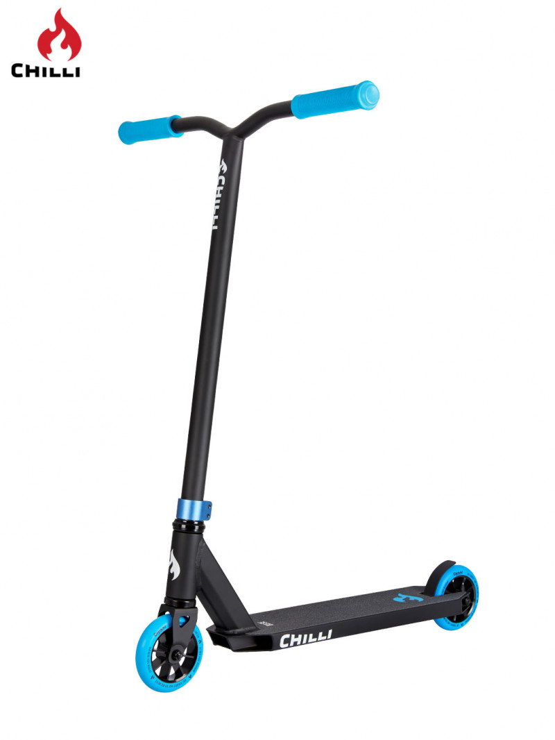 La trottinette Freestyle Chilli Base Bleu est le modèle idéal pour débuter dans le freestyle, quel que soit son âge. Elle est équipée des meilleurs matériaux et offre un excellent rapport qualité/prix. Avec ses 50 cm de long et ses 11,5 cm de large, le deck offre un espace parfait pour une bonne stabilité. L'unité de couleur entre le collier de serrage double vis, les roues, et les poignées apporte un look simple et élégant. Elle combine légèreté et résistance grâce à son système de compression HIC universel. La trottinette Chilli Base offre au rider débutant leurs premières sensations en Freestyle sans faire de compromis sur la qualité et la sécurité.