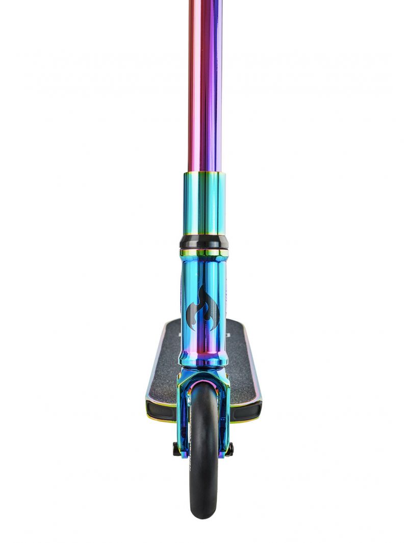 La trottinette Freestyle Reaper Reloaded Néochrome est la trottinette parfaite pour les riders confirmés et plus âgés. Tout est un peu plus grand sur cette trottinette à la finition irréprochable : un deck 100% aluminium extra large, une T-bar de 60 cm (hauteur & largeur) et des roues 120 mm à moyeu en aluminium. La trottinette Chilli Reaper Reloaded et le lien parfait entre les riders débutants et les pro. Son design unique en fait une trottinette singulière qui ne passera pas inaperçu !