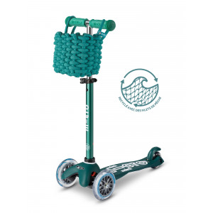 Pour embarquez ses petits trésors partout, optez pour le pack comprenant une Mini Micro Deluxe Eco Vert fabriqué à partir de plastique recyclé ainsi qu'un panier en coton vert 100% naturel offert pur tout achat !