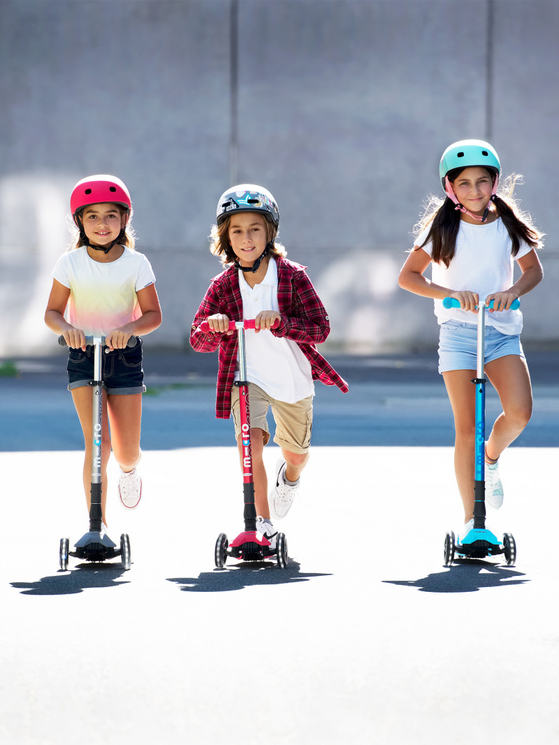 La Maxi Micro, notre trottinette 3 roues pour enfants, est l’évolution naturelle de la Mini Micro.