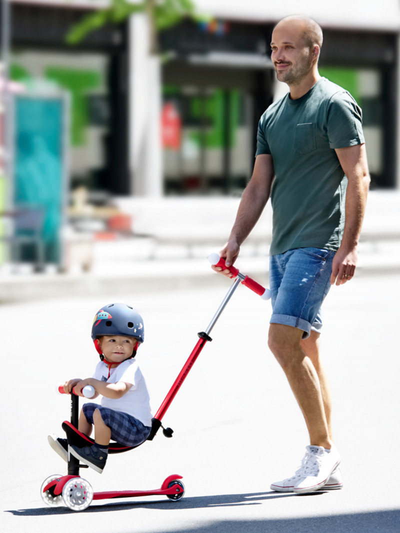 Les trottinettes Mini Micro 3-en-1 grandissent avec votre enfant. Utilisée dans un premier temps comme un porteur (le siège se règle en hauteur), vouspourrez pousser votre enfant avec la barre de poussée télescopique et amovible. En grandissant vous pourrez retirer le siège et votre enfant commencera à appréhender l’utilisation de sa trottinette. Pour finir vous pourrez installer la barre en T.