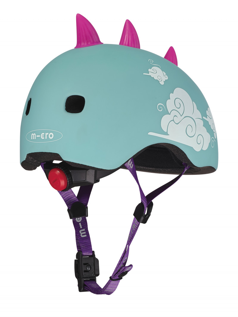 La système de fermeture du casque est une boucle magnétique, ce qui permet aux plus jeunes de mettre leurs casques et de les retirer facilement.