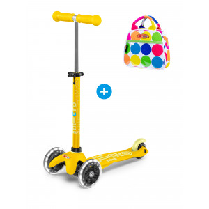 Le gros plus ? Pour l'achat de cette trottinette, un Petit sac à main Pois Fluo vous ai offert ! Celui-ci sera idéal pour que votre enfant transporte son déjeuner, son gouter ou simplement ses petits jouets. Hyper pratique et fonctionnel, la doublure est 100% polyester, et l’extérieur du sac se nettoie d’un coup d’éponge !