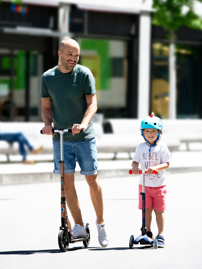 La Maxi Micro est parfaite pour les enfants plus grands, avec une planche plus large et un guidon plus haut. Le poids des Maxi est légèrement plus élevé que celui des Mini.