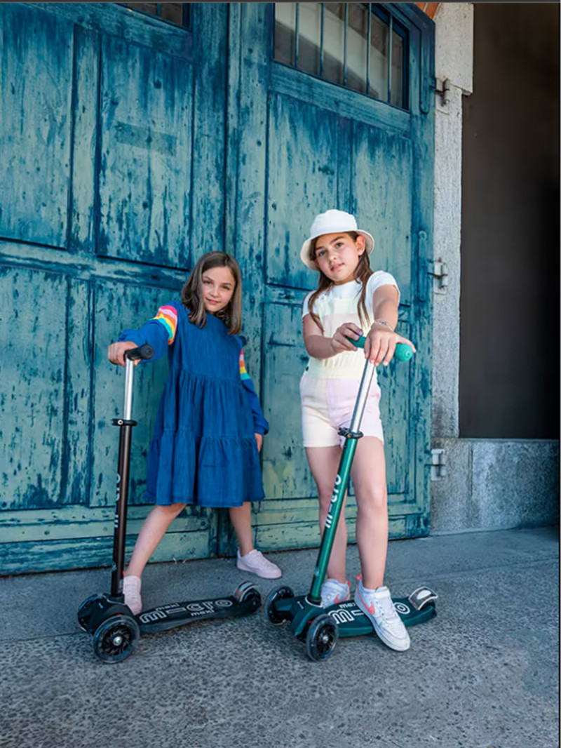 La Maxi Micro est parfaite pour les enfants plus grands, avec une planche plus large et un guidon plus haut. Le poids des Maxi est légèrement plus élevé que celui des Mini.