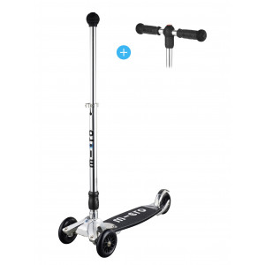 Cette trottinette est livrée avec deux barres de direction interchangeables : la barre en T, et le joystick, que vous pourrez alterner à votre envie.