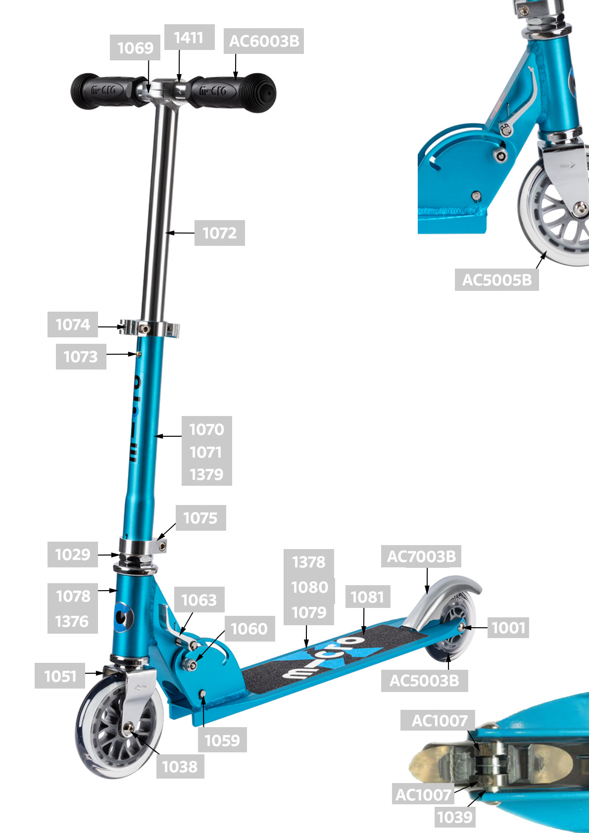 Pièces détachées pour trottinette enfants et ados Micro Light - Micro Mobility