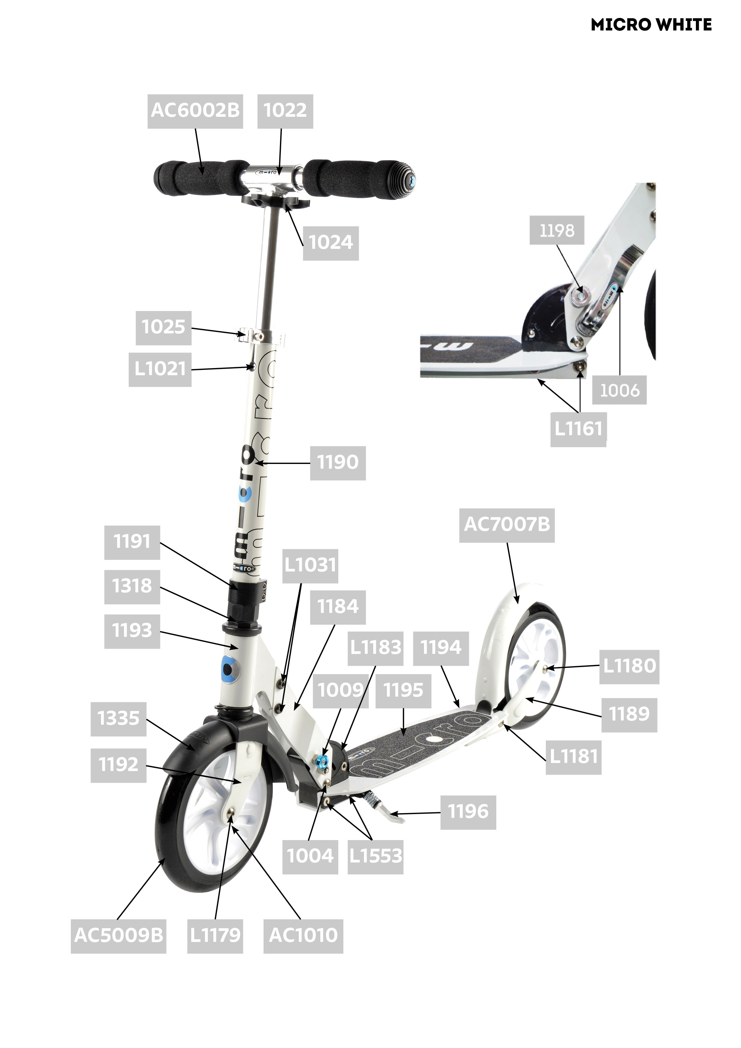 Pièces détachées pour trottinette adulte Micro White - Micro Mobility