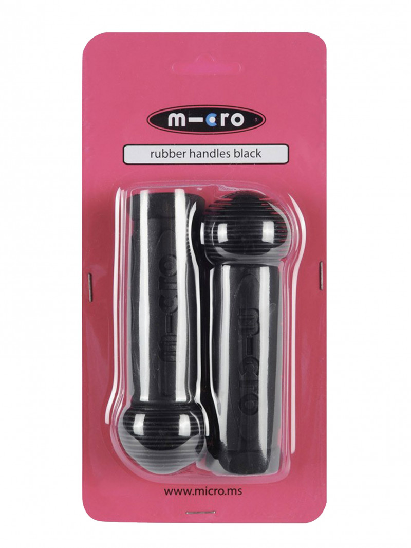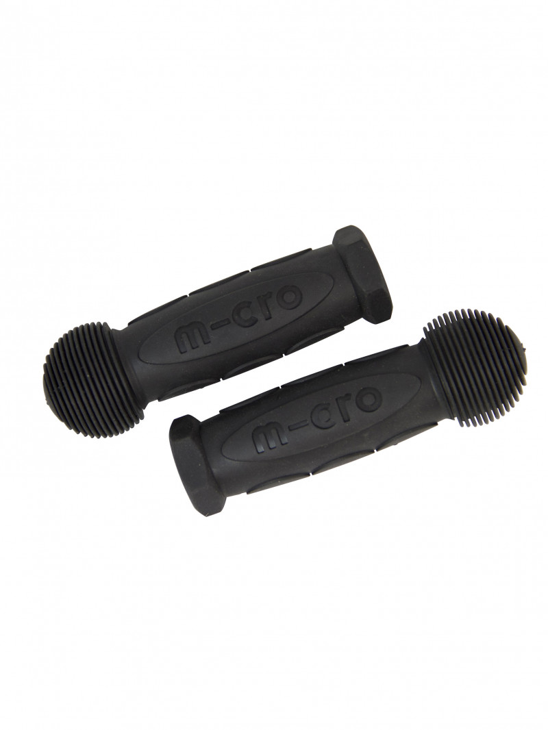 Ce jeu de poignées noires en caoutchouc s'adaptent sur toutes les trottinettes 3 roues Micro : Mini Micro 3-en-1, Mini Micro Classique, Deluxe, Maxi Micro ainsi que sur les gammes Micro Trike et G-bike.