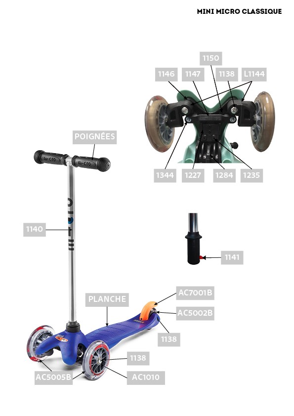 Pièces détachées de votre trottinette Mini Micro - Micro Mobility