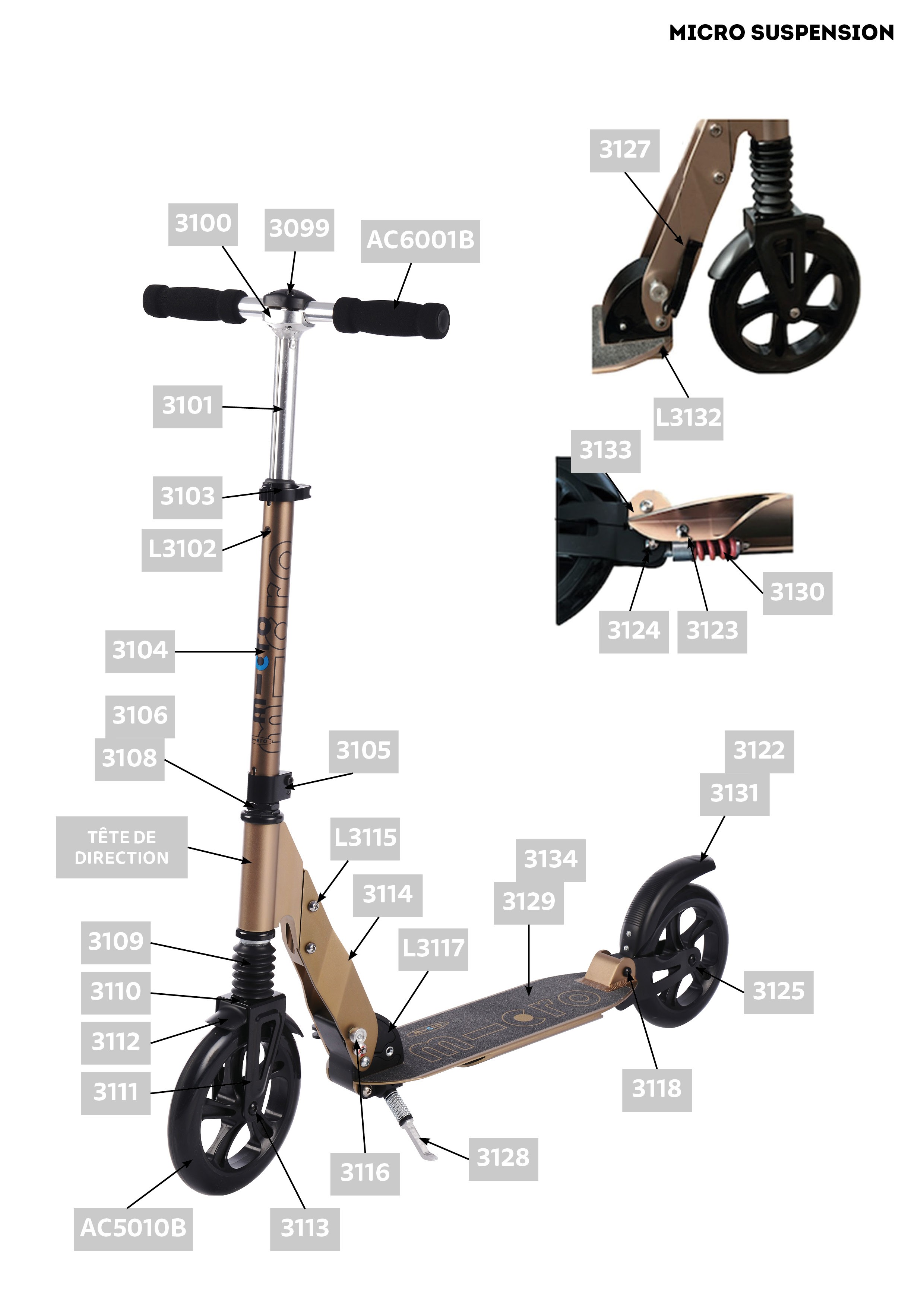 Pièces détachées trottinette Micro Suspension - Micro Mobility
