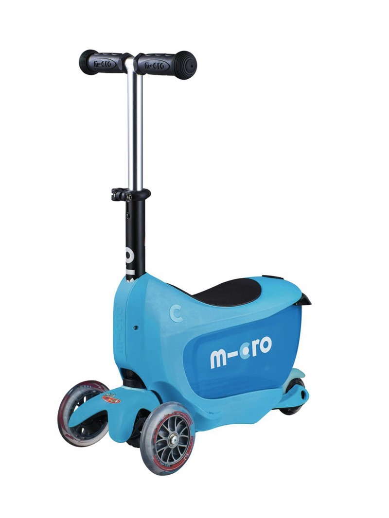 La Mini 2Go Deluxe fonctionne de la même manière que la Mini Micro 3-en-1. La principale différence est que cette trottinette évolutive est équipée d’un coffre amovible spacieux pour ranger les petits trésors des enfants et d’un siège large et confortable.