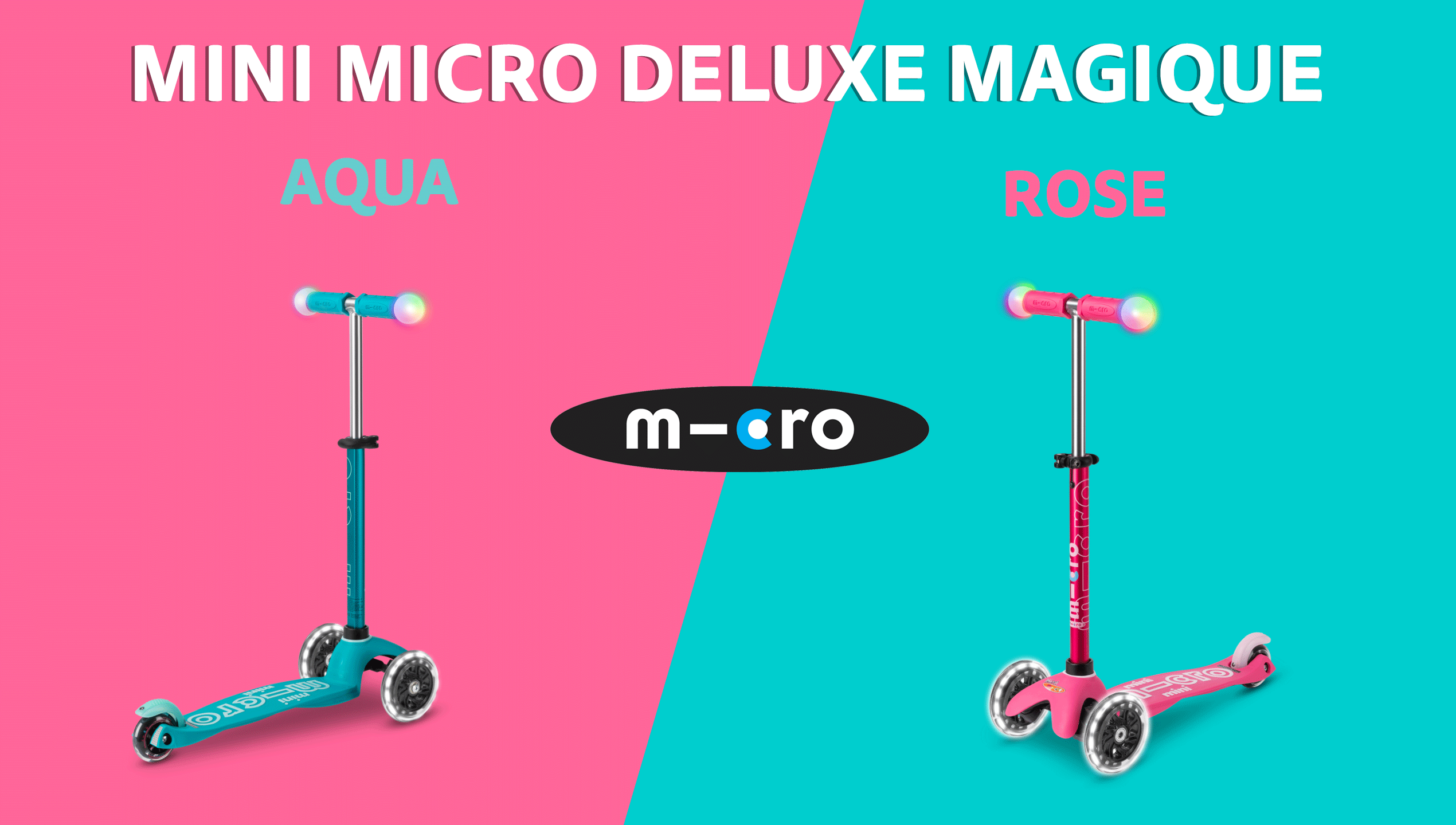 Les beaux jours reviennent ! Micro vous présente les nouvelles trottinettes Mini Micro Deluxe Magique Rose et Aqua ! Fun, magique et lumineuse, elle sera votre alliée idéale lors des balades ensoleillées !